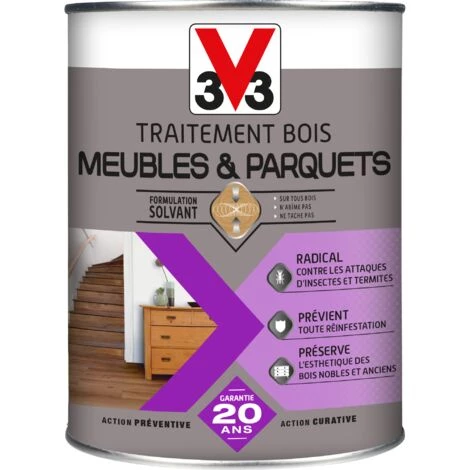 Le traitement Poutres et Charpentes V33 élimine insectes, termites et larves responsables de la dégradation du bois. Grâce à sa formule haute pénétration, ce traitement bois traite en profondeur et efficacement les bois de forte section (solives, portes, poutres).