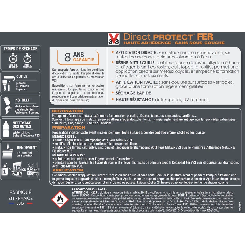 Bombe De Peinture Glycéro Multi-matériaux V33 Direct Protect Vent D’ouest 0,4 L – Vent D’Ouest