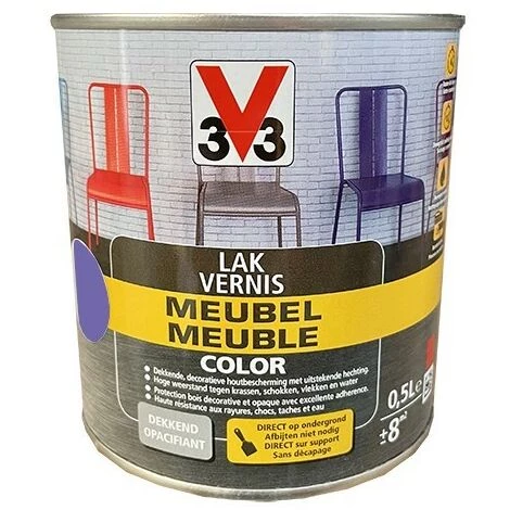 V33 Vernis Meuble Color apporte au bois une protection dĂ©corative opacifiante satinĂ©e. Elle assure une excellente rĂ©sistance aux chocs, aux rayures, aux tâches et Ă l’eau. S’applique directement sur tous types de supports Ă rafraichir: bois, vernis, bois plaquĂ©s, stratifiĂ©s, mĂ©laminĂ©s, OSB, mdf… Restriction: Ce produit ne peut ĂŞtre expĂ©diĂ© vers la BelgiqueÂ