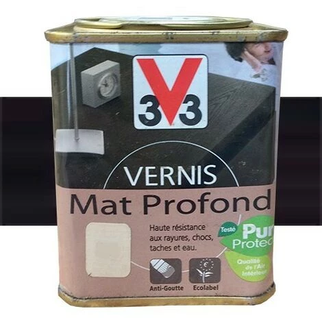 V33 Vernis Meubles et Boiseries WengĂ© du ZaĂŻre Mat Profond RecommandĂ© pour la dĂ©coration et la protection des meubles et boiseries intĂ©rieures, Meubles, portes, objets, S’applique sur toutes les essences de bois, europĂ©ennes et exotiques, Hautes rĂ©sistance aux rayures, chocs, taches et eau, Apporte une coloration riche et intense au bois tout en prĂ©servant son aspect.