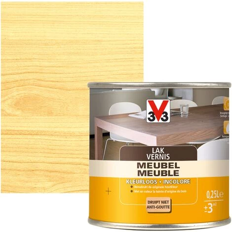 Prolongez la durĂ©e de vie de vos meubles en bois avec le Vernis Meubles V33 250ml. Le vernis un film transparent au bois et le protège contre les rayures, les chocs, les taches et l’humiditĂ©.: