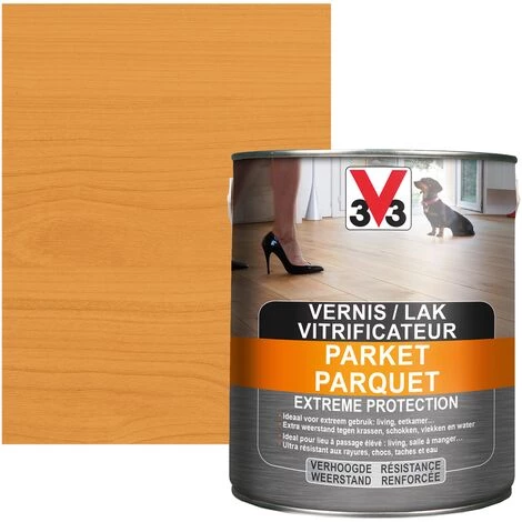 Le vitrificateur Parquet Extreme Protection de V33 2,5L est particulièrement adaptĂ© Ă une utilisation dans de nombreuses zones de circulation telles que le salon et la salle Ă manger. Le vernis offre une protection durable et rend le parquet rĂ©sistant aux rayures, aux chocs, aux taches, Ă l’usure et Ă l’eau. Il forme une couche protectrice Ă la fois souple, pour suivre les mouvements naturels du bois, et dure, afin d’assurer une rĂ©sistance optimale contre les agressions du quotidien.